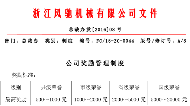 我司為了相應(yīng)政府號召,鼓勵符合要求的員工代表企業(yè)參加各項(xiàng)比賽和評選活動,特完善了獎勵政策,對于員工代表企業(yè)在各類比賽或評選中獲得名次及成功入選,為公司贏得榮譽(yù),一經(jīng)核實(shí)公司將給予特別榮譽(yù)獎,并額外給予積分獎勵。