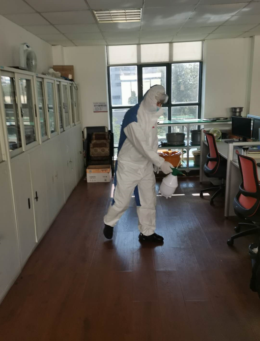 保障每位員工的健康是復(fù)工生產(chǎn)不容忽視的重要部分,充足的防疫物資是打好復(fù)工持久戰(zhàn)的關(guān)鍵。采購(gòu)組積極準(zhǔn)備各類防疫物資,確保了口罩、酒精、消毒液、噴壺等發(fā)放至生產(chǎn)車間和員工手中。此外,公司黨支部黨員勇當(dāng)消毒先鋒提前做好辦公區(qū)、生產(chǎn)及作業(yè)場(chǎng)地等公共區(qū)域的消毒工作,以降低病毒的滋生能力和傳染力。
