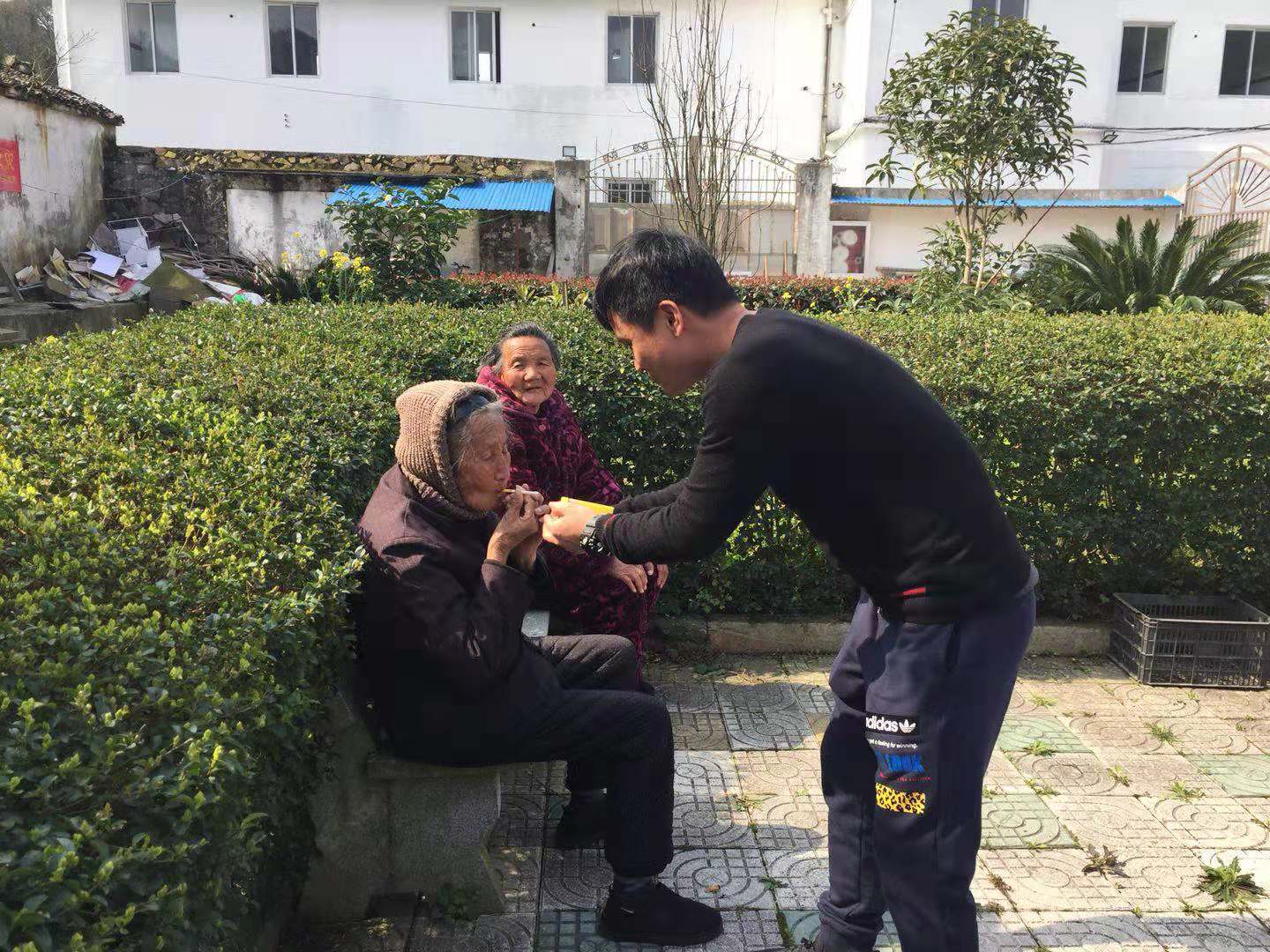 中午時分,公司董事長潘衛(wèi)民、財務總監(jiān)呂良君親臨烏坑山頭,他們倆一如往常的微笑,一如往常地握著老人們的手,他們沒有言語,只是微笑,只是與老人們點頭,我們只是看著,老人們的手分明握得緊緊的,緊緊的……